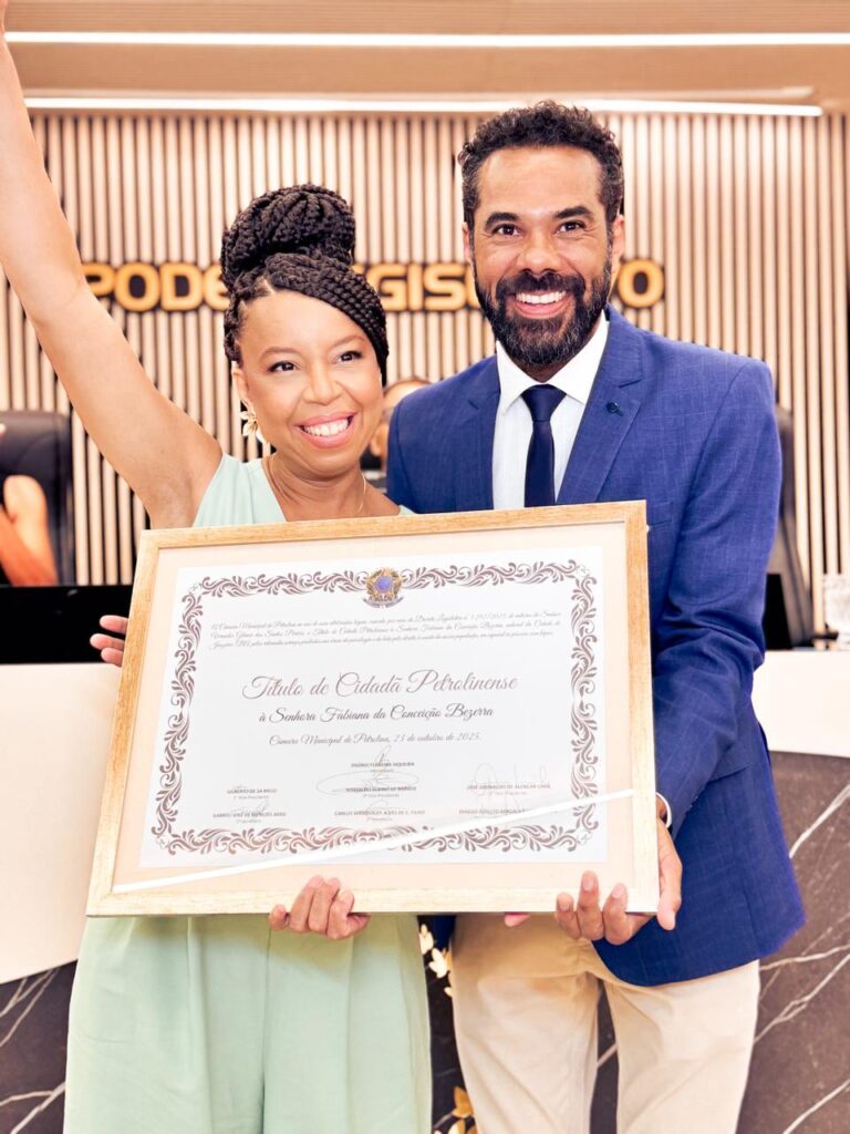 A honraria foi concedida por meio de Projeto de Decreto Legislativo de autoria do vereador Professor Gilmar Santos (PT), aprovado pela Casa Plínio Amorim como forma de reconhecer os relevantes serviços prestados por Fabiana à população de Petrolina e do Vale do São Francisco.