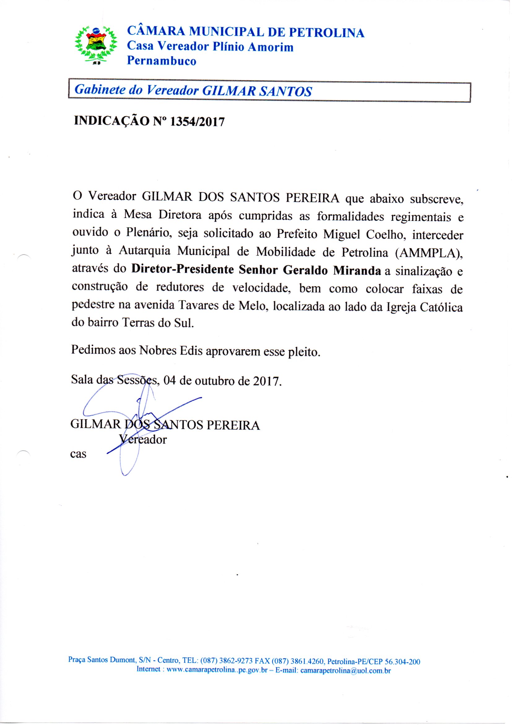 Indicação Nº 1354/2017 – Terras do Sul – Sinalização e construção de redutores – Aprovado em 04/10/2017 Baixar Arquivo