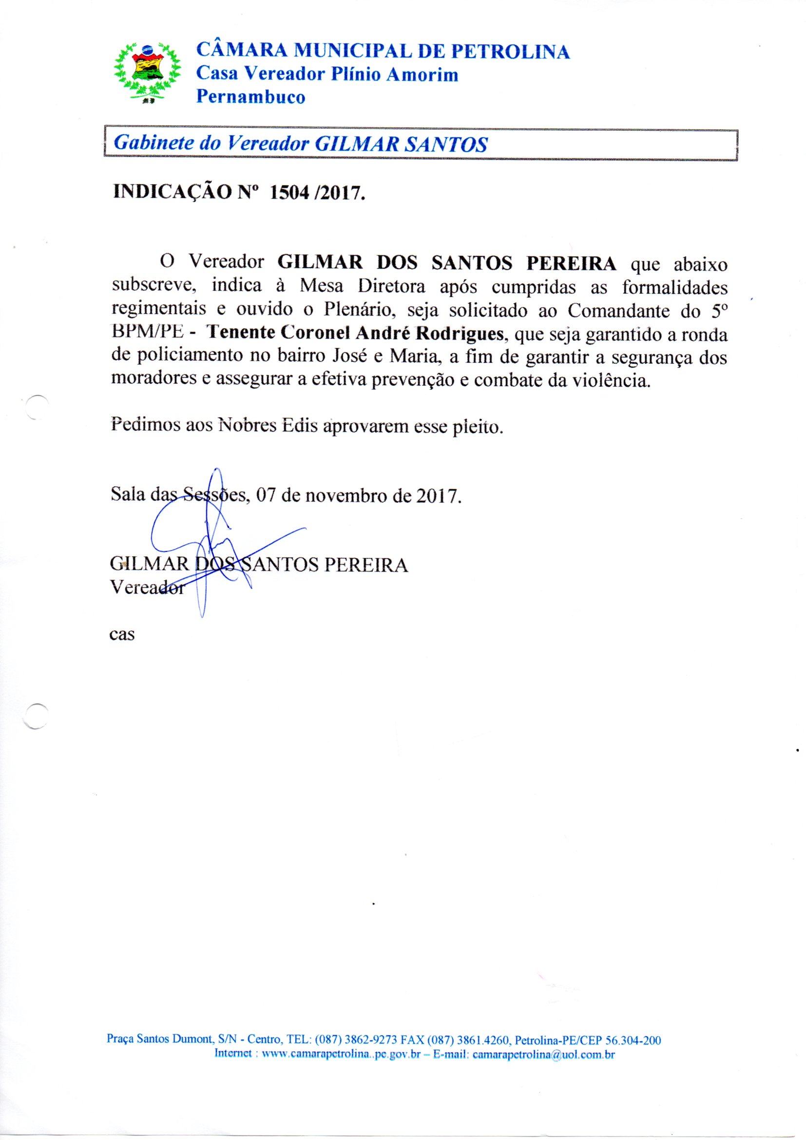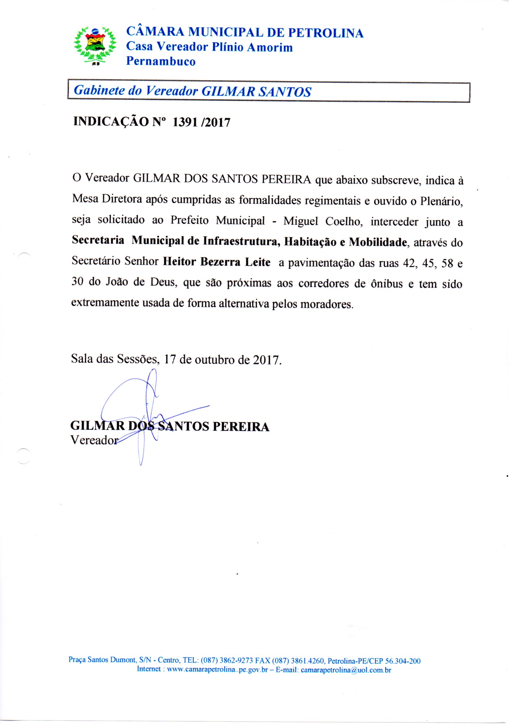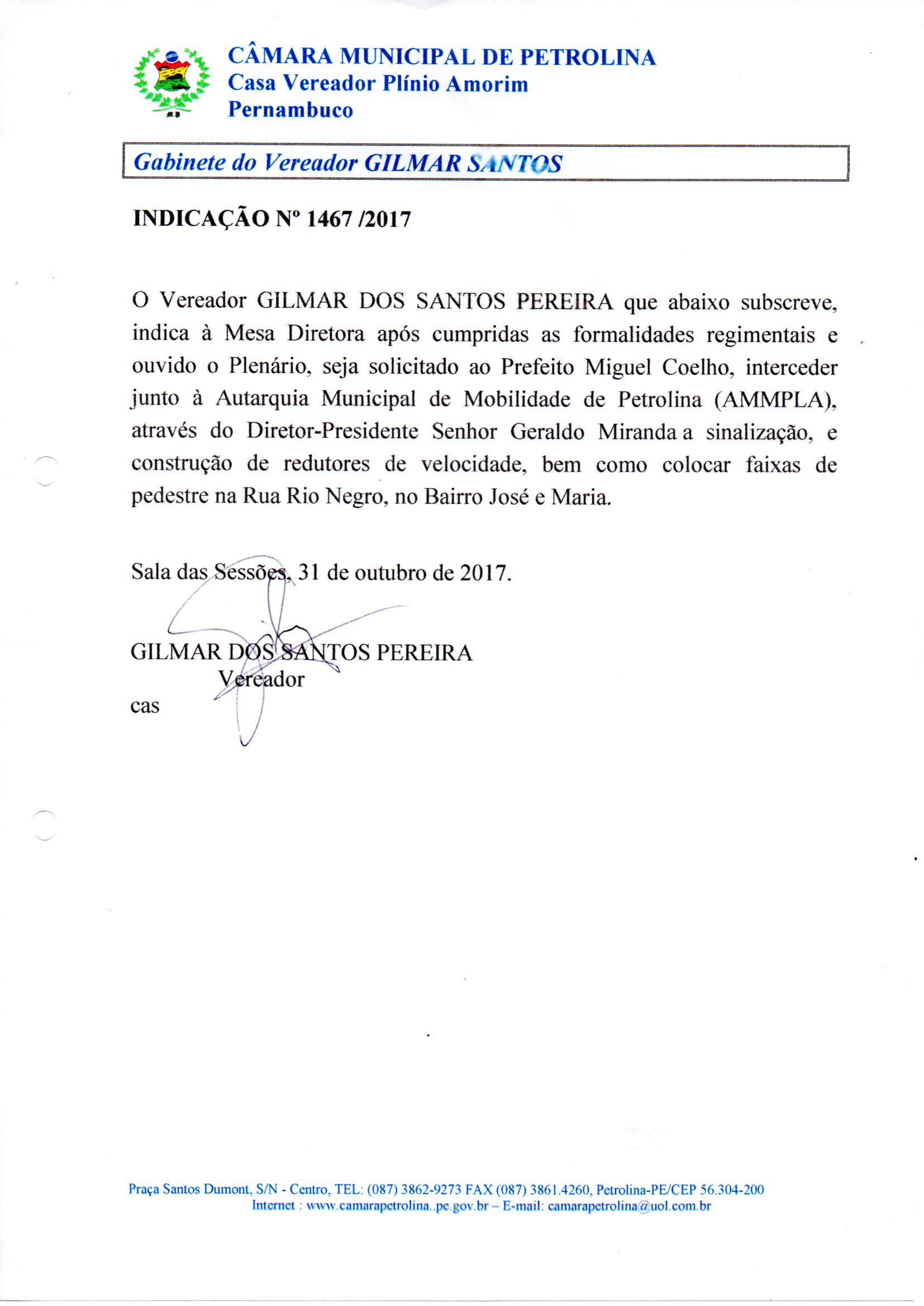 Indicação Nº 1467/2017 – José e Maria – Sinalização e construção de redutores – Aprovado em 31/10/2017 Baixar Arquivo