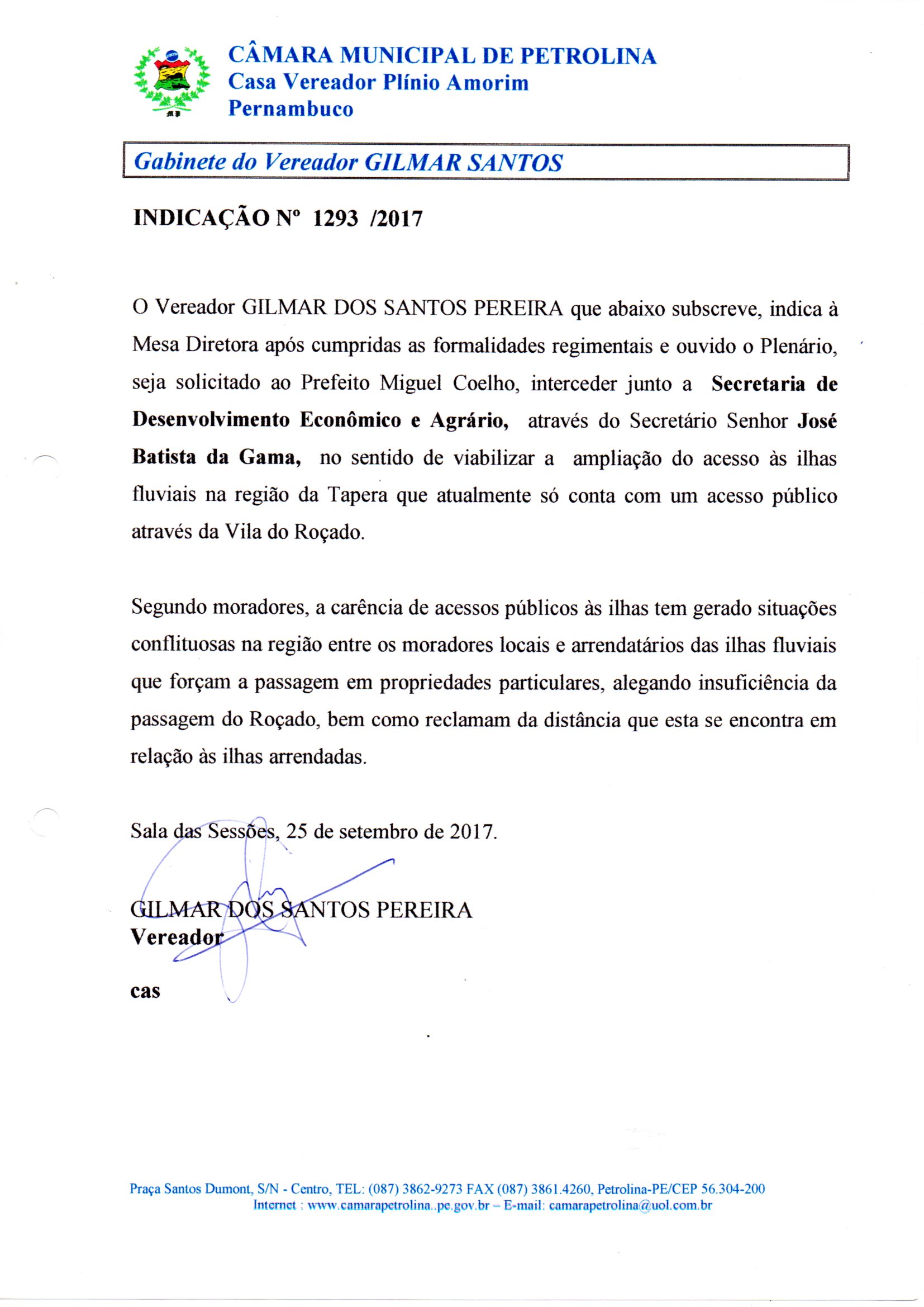 Indicação Nº 1293/2017 – Tapera – Ampliação do acesso às ilhas – Aprovado em 25/09/2017 Baixar Arquivo