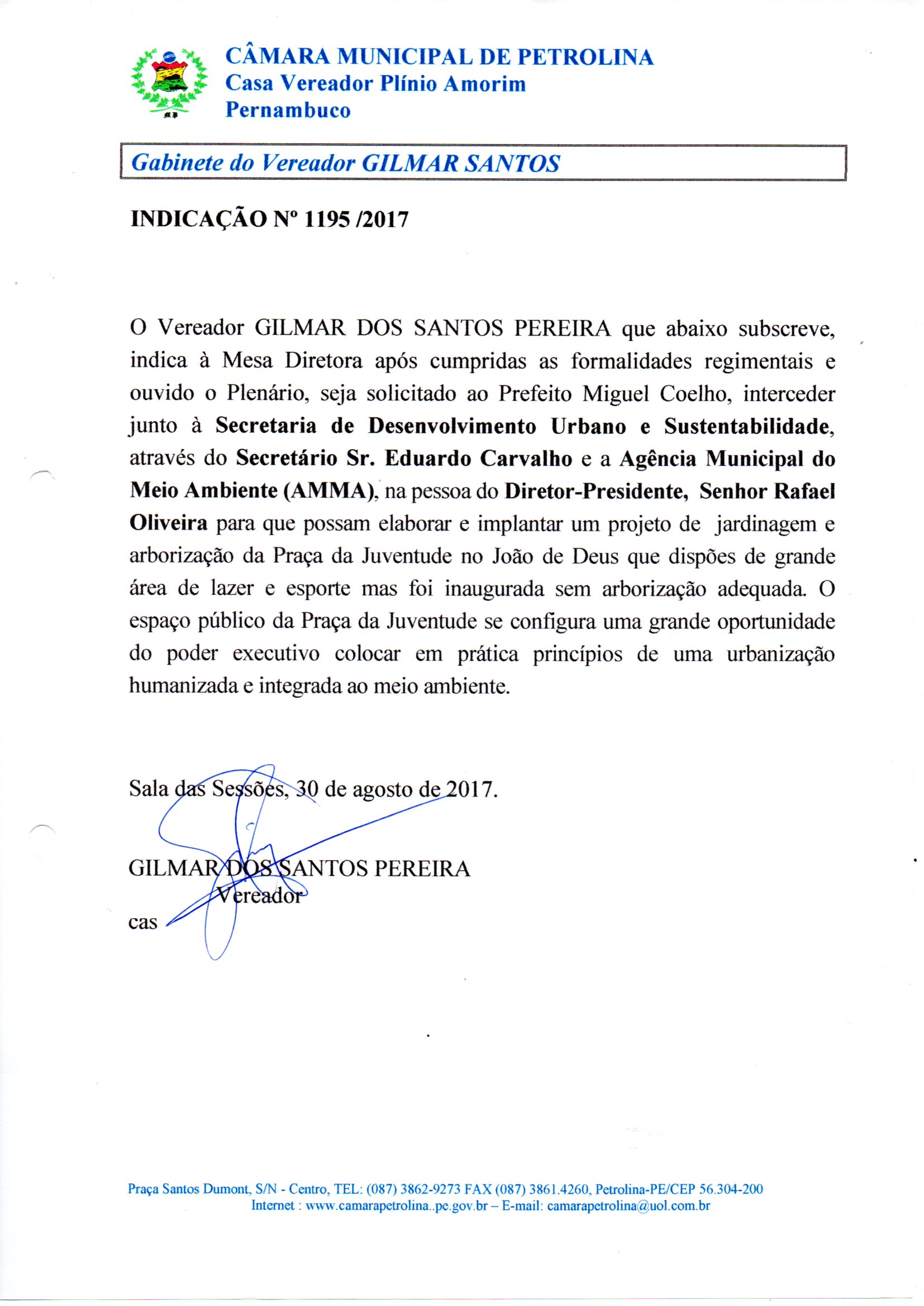 Indicação Nº 1195/2017 – João de Deus – Elaboração e implantação de projeto – Aprovado em 30/08/2017 Baixar Arquivo