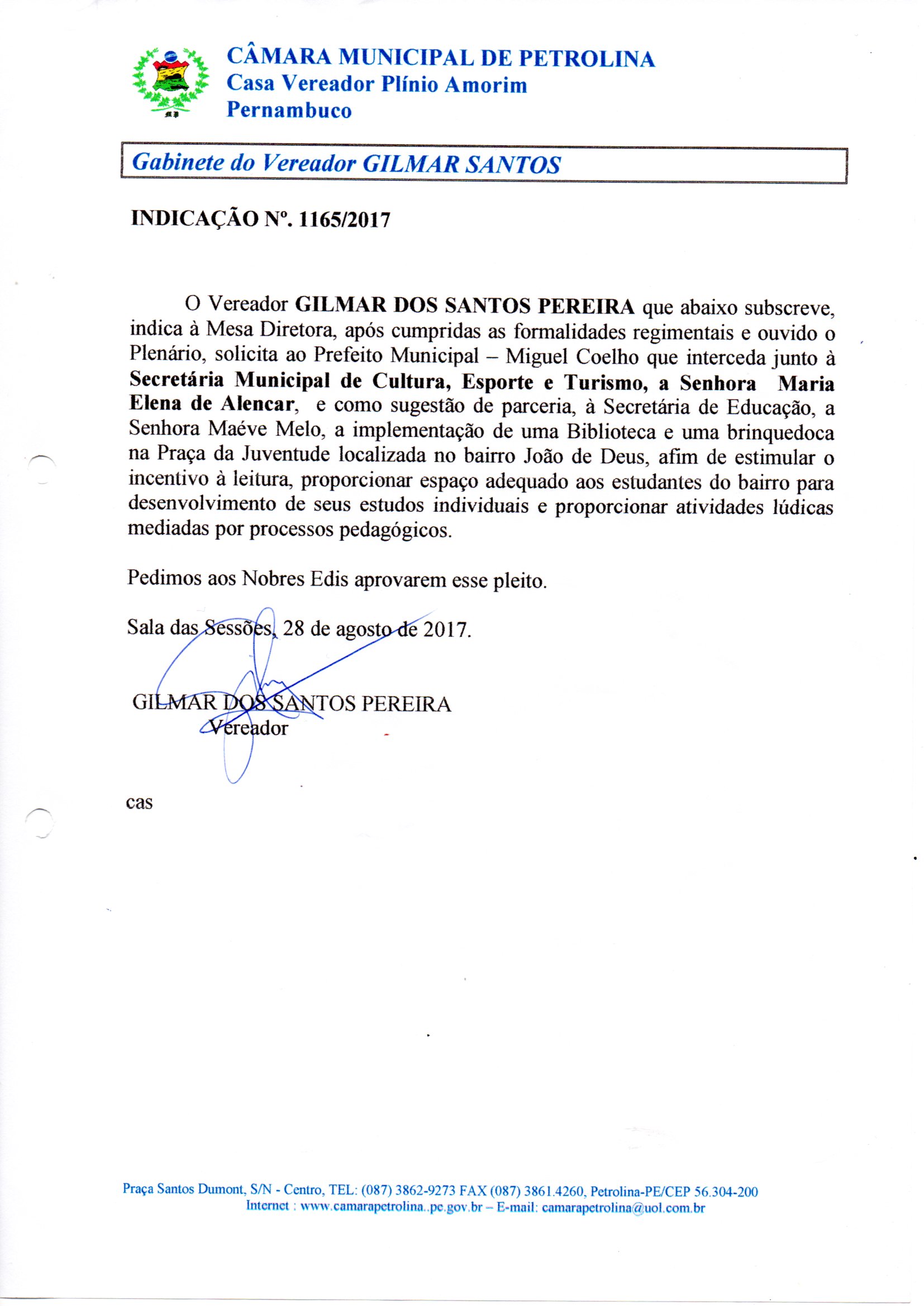 Indicação Nº 1165/2017 – João de Deus – Implementação de biblioteca e brinquedoteca – Aprovado em 28/08/2017 Baixar Arquivo